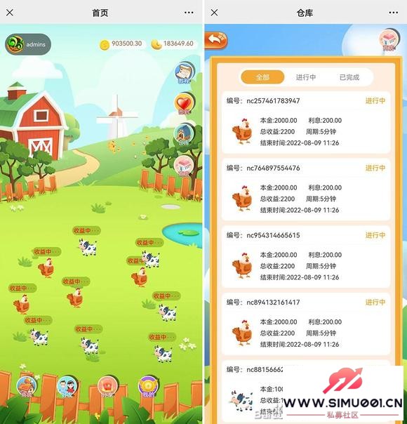 3 \( |2 t( K% `) q$ m! s2 E0 }" S: g6 d养鸡养牛养猪养羊养殖游戏链游Gamefi系统农场商城DAPP是一款结合区.块.链技术的创新养殖类游戏应用。在这个游戏中,玩家将扮演一名农场主,通过养殖各种家禽家畜来获取收益,并享受经营农场的乐趣。9 ]& P6 I2 l9 k4 g( x; D/ L0 K- i