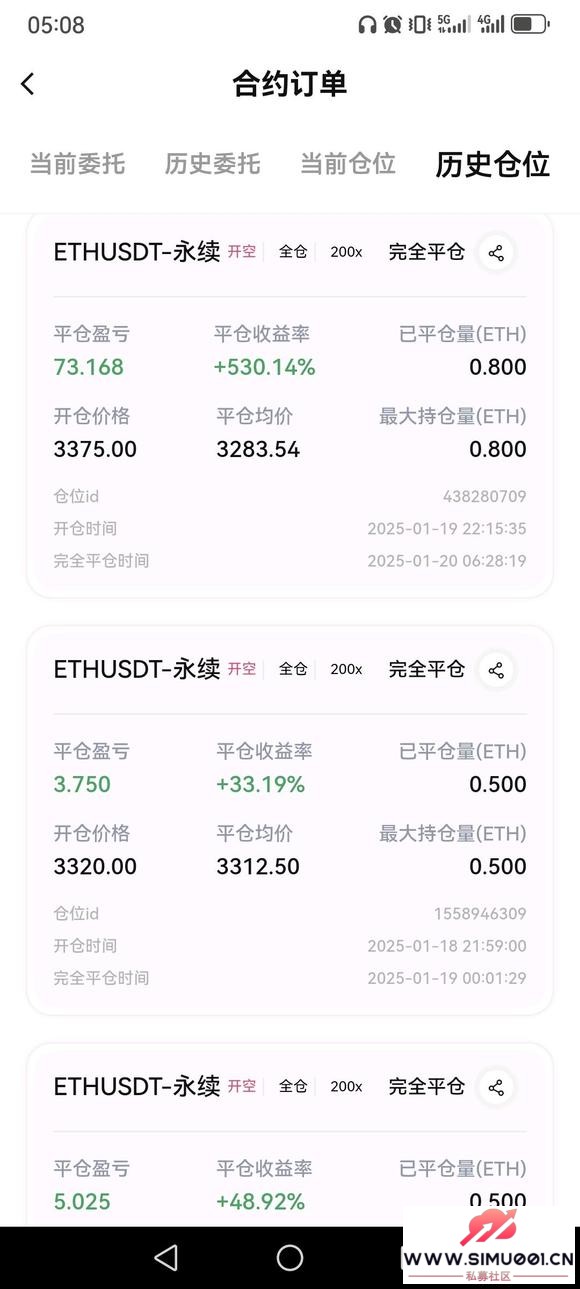去年8月开始玩币,也没人带,全是自己摸索,开始赔的稀里哗啦,200倍的合约,赚钱是真的快,但无论赚了多少,最后一针全部爆仓,连续的爆仓,让人都快神经质了,自信也快磨没了,后来沉寂了2个月,没有碰币,没有碰合约,从去年12月试探性的开始玩,虽然合约倍数高,但不贪,始终留有余地,虽然每次赚的没有一开始多,但不再是单纯凭运气赌,也不再贪心,居然在一个月内资产翻倍,赚多赔少,看到别人爆仓,仿佛就看到一开始玩币的自己。