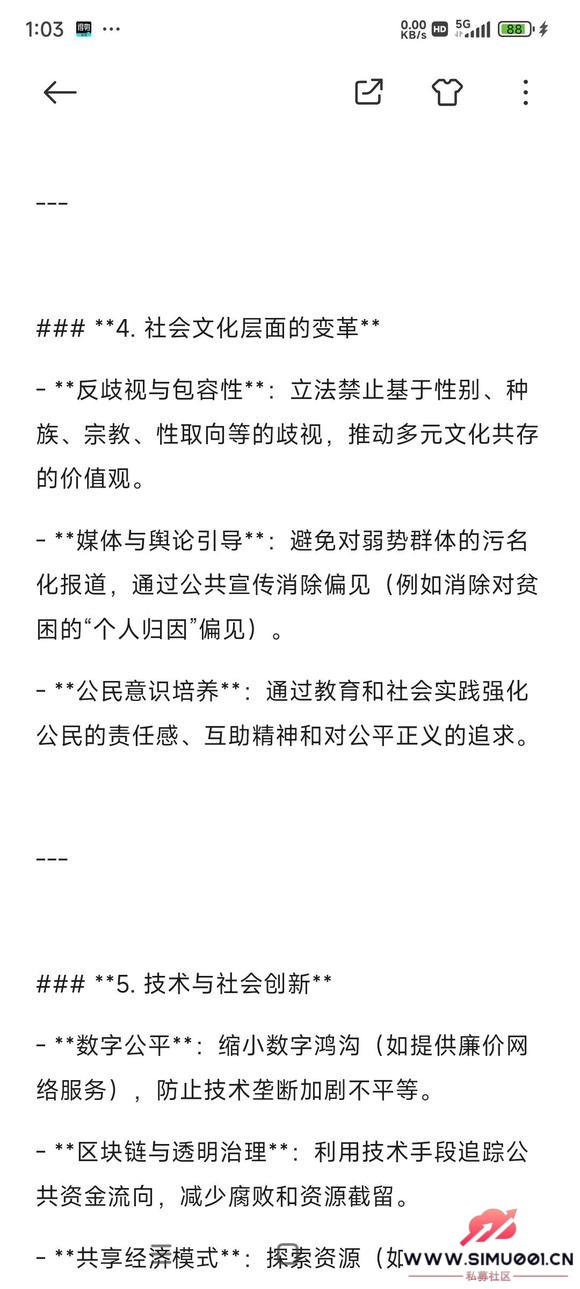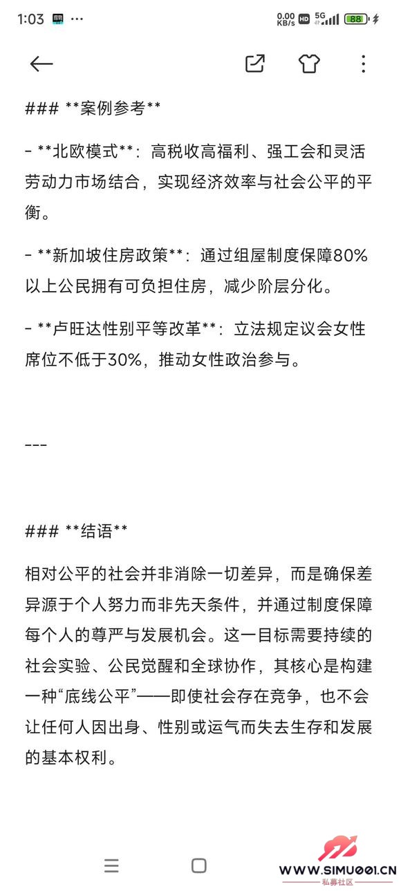 % n3 }$ Y. X B* h) v+ H# y相对公平的社会并非消除一切差异,而是确保差异源于个人努力而非先天条件,并通过制度保障每个人的尊严与发展机会。这一目标需要持续的社会实验、公民觉醒和全球协作,其核心是构建一种“底线公平”——即使社会存在竞争,也不会让任何人因出身、性别或运气而失去生存和发展的基本权利。