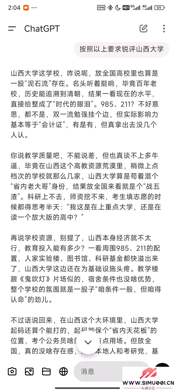 不过话说回来,在山西这个大环境里,山西大学起码还算个能打的,起码能保个“省内天花板”的位置,考个公务员啥的也算有点用场。但放全国,真的没啥存在感,除了本地人和考研党,基本没人提。要是真想在学术或者就业上搞点大活的,劝你还是早点往外卷吧,别指望在这学校躺赢,未来是自己的,别让学校拉低了你的上限。 |