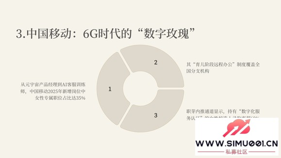 W# t5 R: C* B1 D5 L, r6 F/ _从元宇宙产品经理到AI客服训练师,中国移动2025年新增岗位中女性专属职位占比达35%。其“育儿阶段远程办公”制度覆盖全国分支机构,职芽内推通道显示,持有“数字化服务认证”的女性候选人录取率超60%。