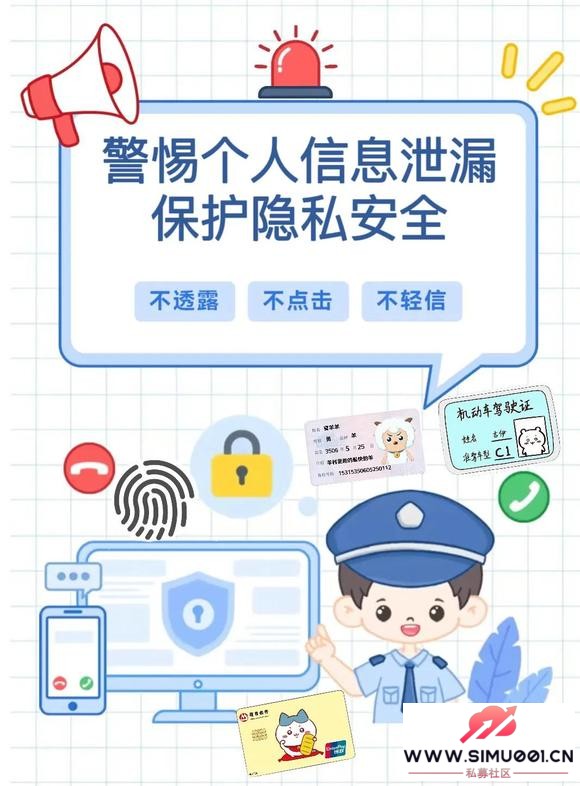 . J5 K( ~3 x: k在数字时代,我们的姓名、电话、身份证号等个人信息已成为每个人行走网络空间的通行证。然而,不法分子正通过非法获取和交易等方式,编织着精准推销、盗用身份等黑产链条。作为您身边的网络安全卫士,网警整理了一份个人信息保护指南,提醒网民加强个人信息保护,谨防泄露!6 n4 \' d v# y* U8 l